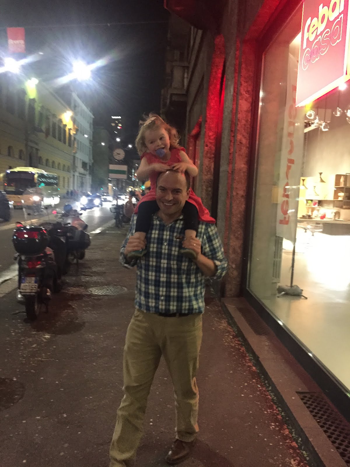 Day #2 in Milan - We headed to Princi Corso for breakfast. The place was packed, so I parked the kids inside the door of the little cafe and BEGGED them to stay in the stroller while I ordered. While standing in line, almost to the counter, I look over and watch Reese hop out of the stroller and start playing with the large glass door to the cafe, release it from its open state and it starts to close. Luckily the nice man behind me, let me back into line and the kids stayed in the stroller until we went outside. :)